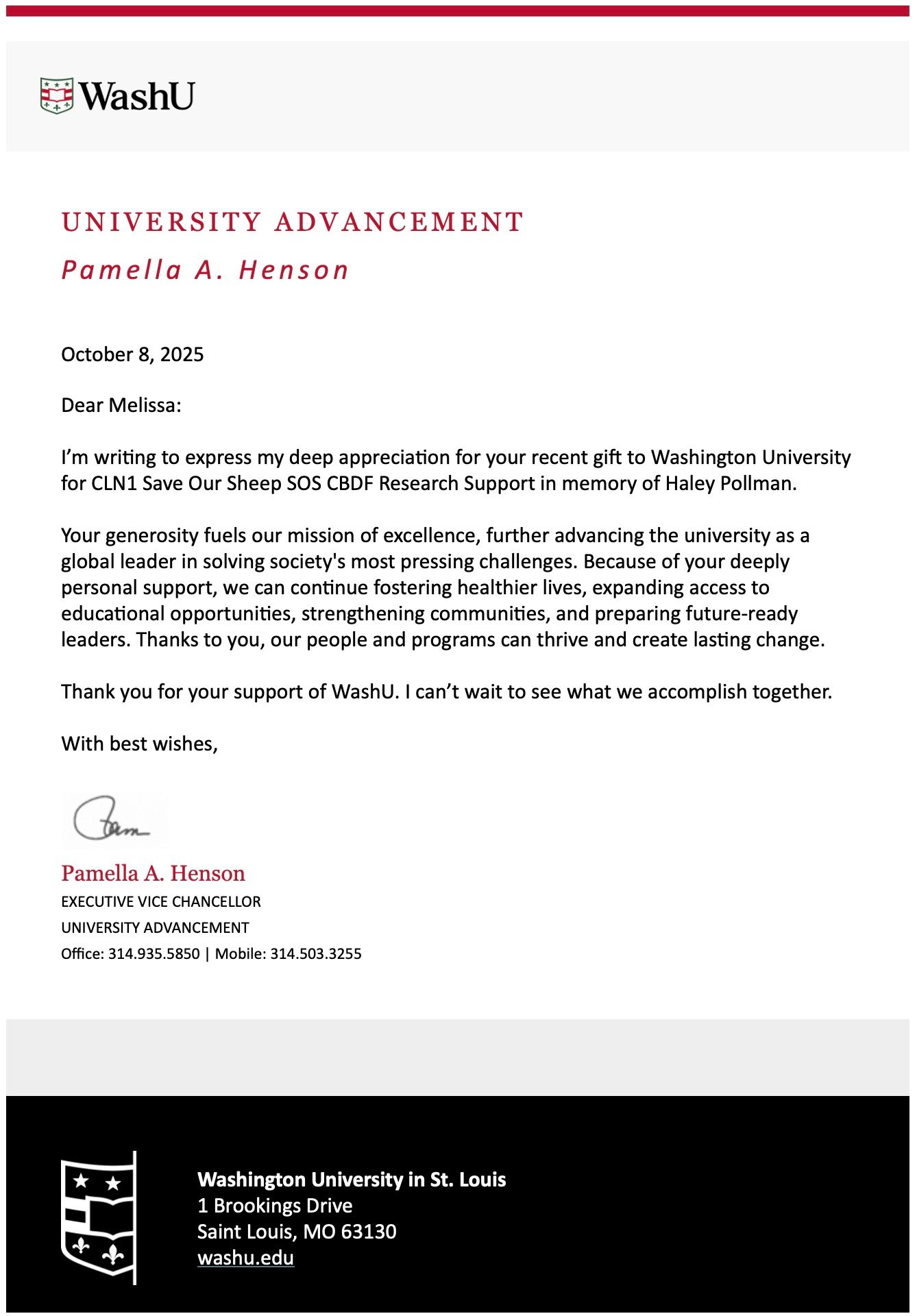 Washington State University St. Louis Grant